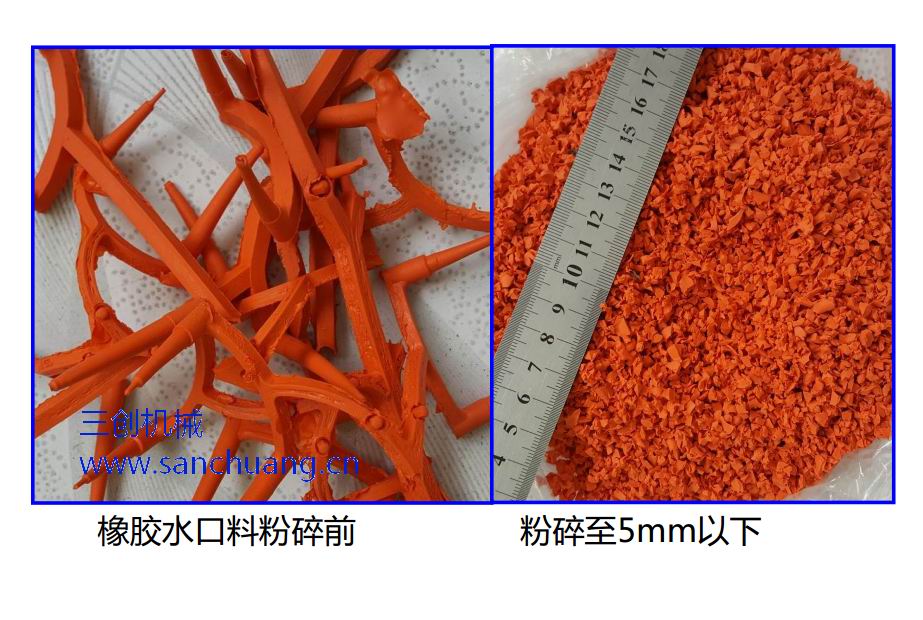 彈性體粉碎機(jī):可粉碎軟膠,彈性體如:TPE,TPR,TPU,TPV,PU,SEBS,硅膠等軟性塑料,且可以24小時(shí)連續(xù)工作,不粘刀,不結(jié)團(tuán),不堵篩網(wǎng)。